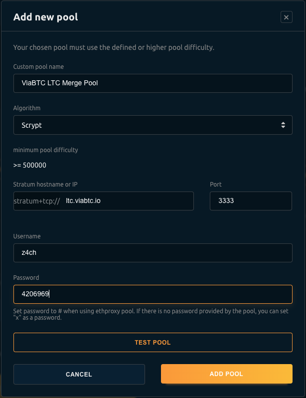 #### This allows you to set the maximum hashing power that you want to get. Remember that the higher the hashing power, the more shares you get from the pool. Every pool has a different estimated reward depending on how much hashing power you're miners are running.
