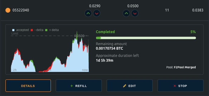 This will determine how much you are willing to pay for a TH/day. Choosing a higher amount would usually result to more miners picking up your order, but would also result to getting your order completed quickly.